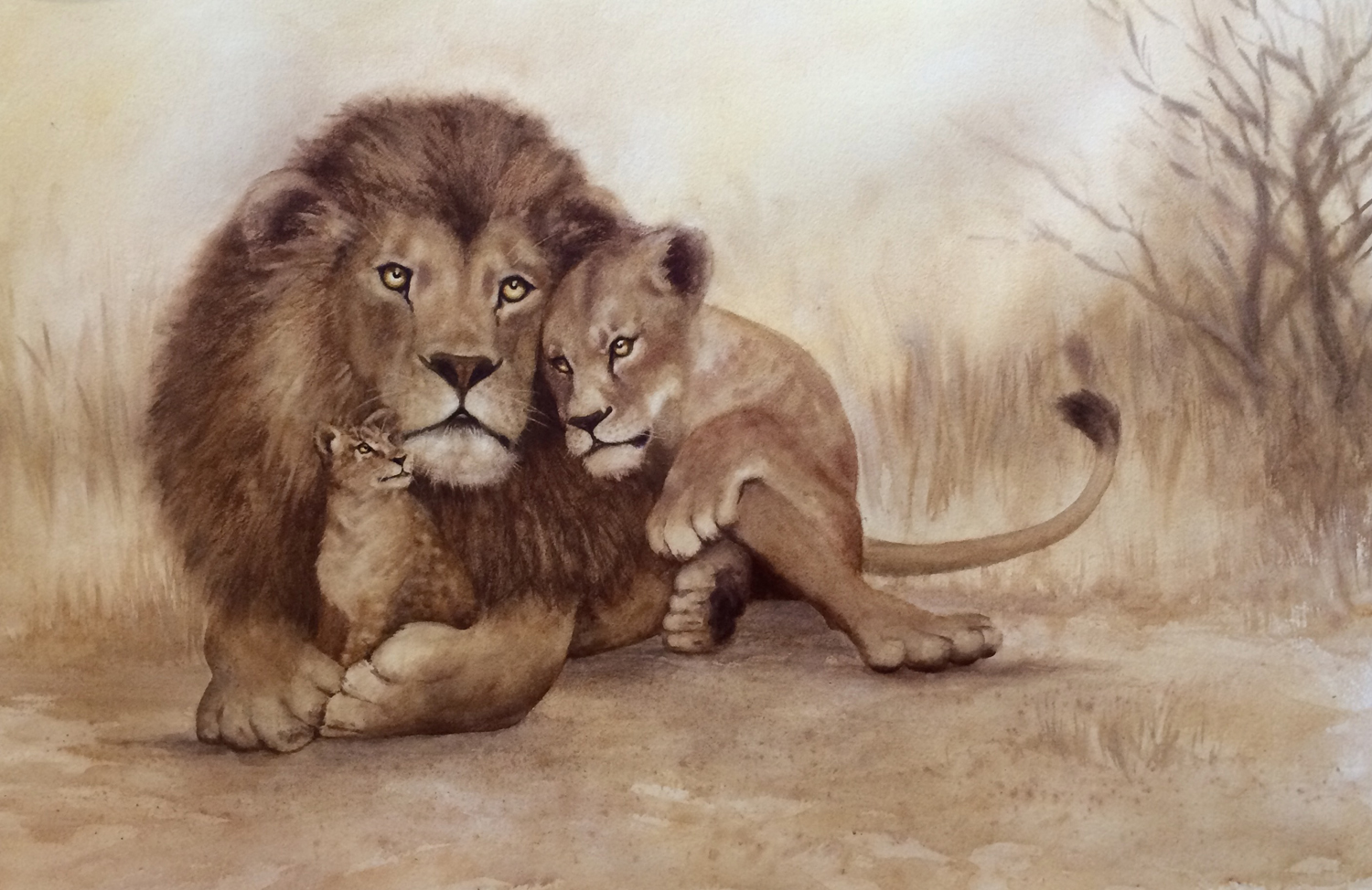 Lions, 57 x 90cm, Watercolour on paper, 2016